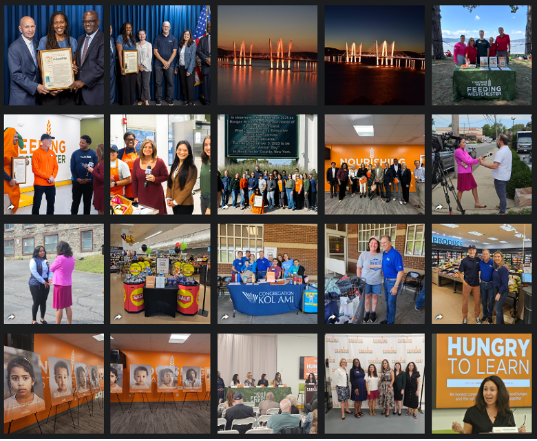 The month began with Westchester County Executive Ken Jenkins presenting a proclamation officially recognizing September as Hunger Action Month in Westchester. On Hunger Action Day (9/9), News 12 Westchester’s Lisa LaRocca broadcast live all morning from Feeding Westchester; The Governor Mario M. Cuomo Bridge glowed in brilliant orange light (9/9 and 9/12); The Business Council of Westchester held their Board of Directors meeting at Feeding Westchester (9/10); and Melissa Colorado, reporter for both NBC4 New York and Telemundo47, was on-location for a story on food distribution in Port Chester (9/12) to build awareness for the Feeding Our Families food drive.